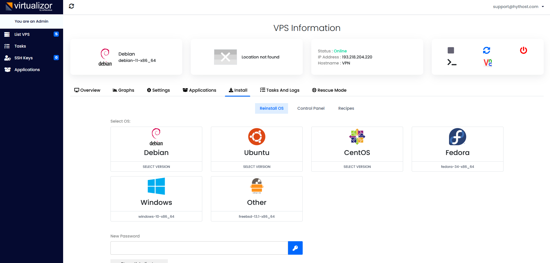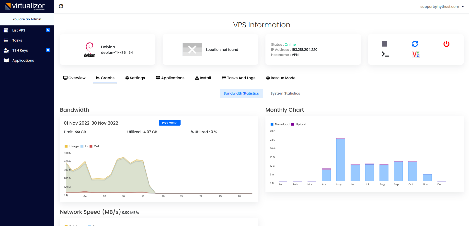A VPS server from HYTHOST offers you performance, guaranteed uptime of 99.9%. The virtual server is the intermediate stage between a normal webhosting subscription and a dedicated server. Your server will benefit from technical assistance from our team of technicians 24x7x365.